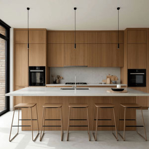 В производстве используем проверенные материалы (массив, ДСП, AGT, МДФ, компакт-плита (HPL), акриловый камень, камень, стекло, металл и др.) и фурнитуру мировых брендов: Hettich, Blum, Hafele и др. Предлагаем богатый выбор отделок и профессиональную покраску с любыми эффектами — от глянца до золочения.